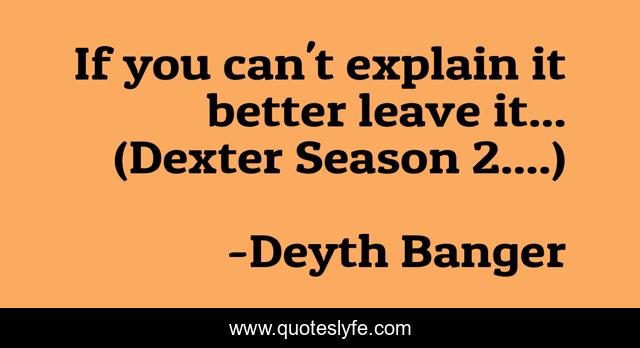 This page presents the quote "If you can't explain it better leave it... (Dexter Season 2....)". Author of this quote is Deyth Banger. This quote is about leave, series, explain, explanations, film,.
