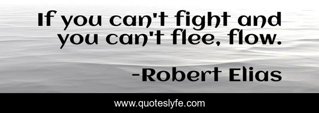 This page presents the quote "If you can't fight and you can't flee, flow.". Author of this quote is Robert Elias. This quote is about philosophy, inspiration,.