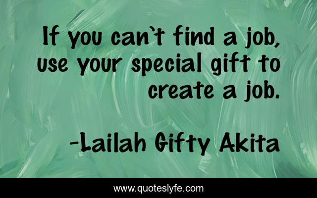 This page presents the quote "If you can’t find a job, use your special gift to create a job.". Author of this quote is Lailah Gifty Akita. This quote is about skills, motivational-inspirational, job,.