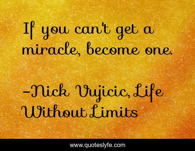 "Nick Vujicic, Life Without Limits Quotes." Quoteslyfe.com, 2025. Fri. 05 Dec. 2025. <https://www.quoteslyfe.com/quote/If-you-can-t-get-a-miracle-129983>.
