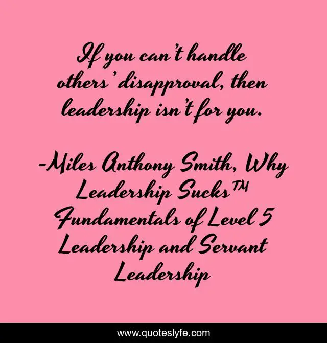 "Miles Anthony Smith, Why Leadership Sucks™ Fundamentals of Level 5 Leadership and Servant Leadership Quotes." Quoteslyfe.com, 2025. Fri. 05 Dec. 2025. <https://www.quoteslyfe.com/quote/If-you-can-t-handle-others-disapproval-194289>.
