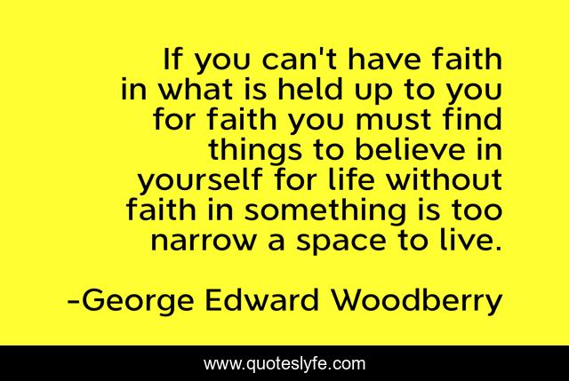 This page presents the quote "If you can't have faith in what is held up to you for faith you must find things to believe in yourself for life without faith in something is too narrow a space to live.". Author of this quote is George Edward Woodberry. .