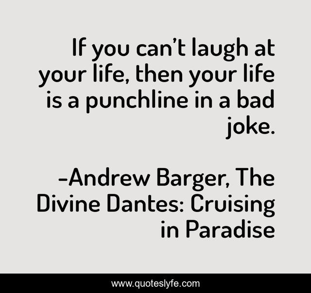 This page presents the quote "If you can’t laugh at your life, then your life is a punchline in a bad joke.". Author of this quote is Andrew Barger, The Divine Dantes: Cruising in Paradise. This quote is about life, life-and-living, laughter, bad-joke,.