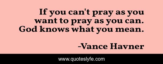 This page presents the quote "If you can't pray as you want to pray as you can. God knows what you mean.". Author of this quote is Vance Havner. .