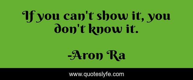 This page presents the quote "If you can't show it, you don't know it.". Author of this quote is Aron Ra. This quote is about atheism, proof-of-existence, evidence, incredulity, proof,.