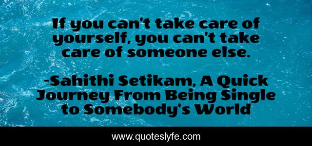 "Sahithi Setikam, A Quick Journey From Being Single to Somebody's World Quotes." Quoteslyfe.com, 2025. Tue. 09 Dec. 2025. <https://www.quoteslyfe.com/quote/If-you-can-t-take-care-of-140879>.