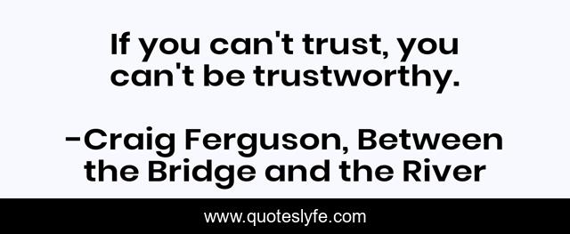 This page presents the quote "If you can't trust, you can't be trustworthy.". Author of this quote is Craig Ferguson, Between the Bridge and the River. .