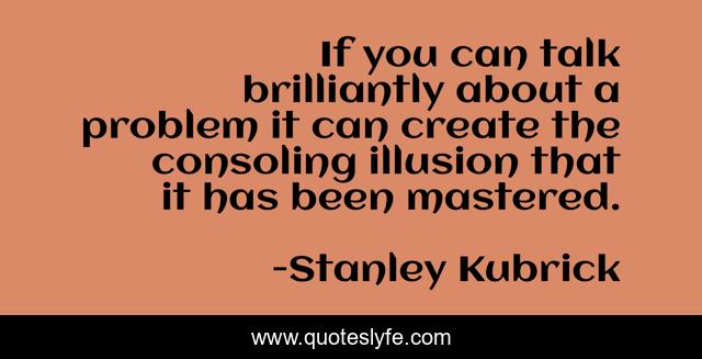 This page presents the quote "If you can talk brilliantly about a problem it can create the consoling illusion that it has been mastered.". Author of this quote is Stanley Kubrick. This quote is about going, getting,.