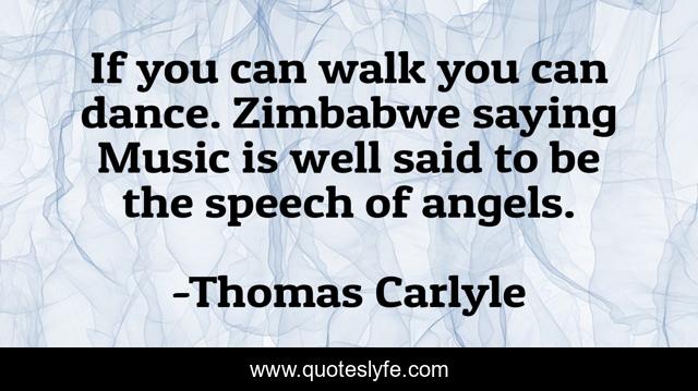 This page presents the quote "If you can walk you can dance. Zimbabwe saying Music is well said to be the speech of angels.". Author of this quote is Thomas Carlyle. .