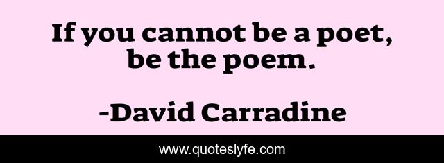 This page presents the quote "If you cannot be a poet, be the poem.". Author of this quote is David Carradine. .