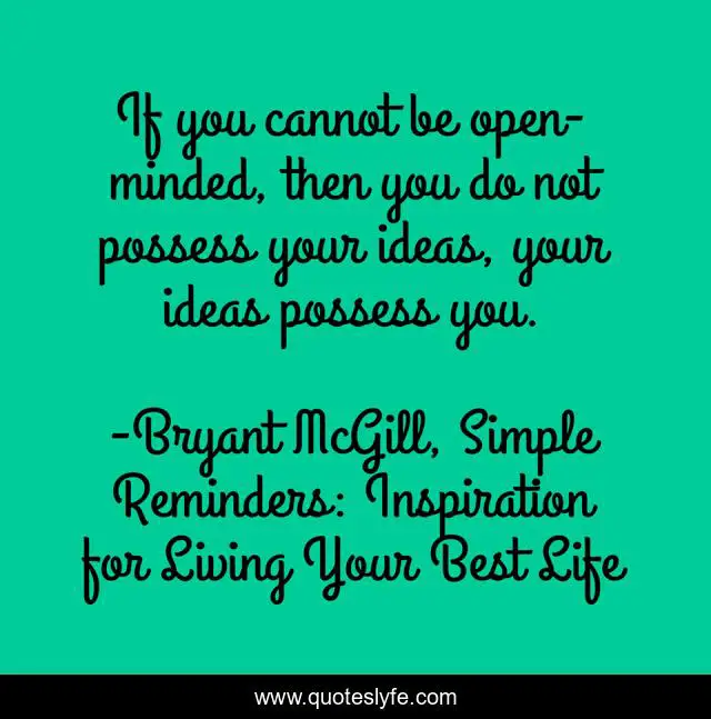 This page presents the quote "If you cannot be open-minded, then you do not possess your ideas, your ideas possess you.". Author of this quote is Bryant McGill, Simple Reminders: Inspiration for Living Your Best Life. This quote is about open-mindedness, possessiveness, growth,.