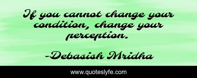 This page presents the quote "If you cannot change your condition, change your perception.". Author of this quote is Debasish Mridha. This quote is about philosophy, debasish-mridha, quotes, inspirational, enthusiasm, change-your-condition, how-to-change, debasish-mridha-m-d, change-your-perception,.