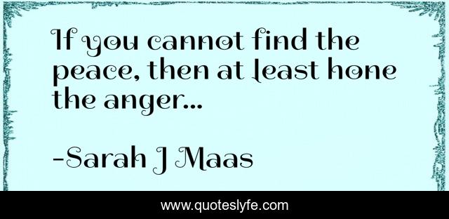 This page presents the quote "If you cannot find the peace, then at least hone the anger...". Author of this quote is Sarah J Maas. This quote is about anger, rowan,.