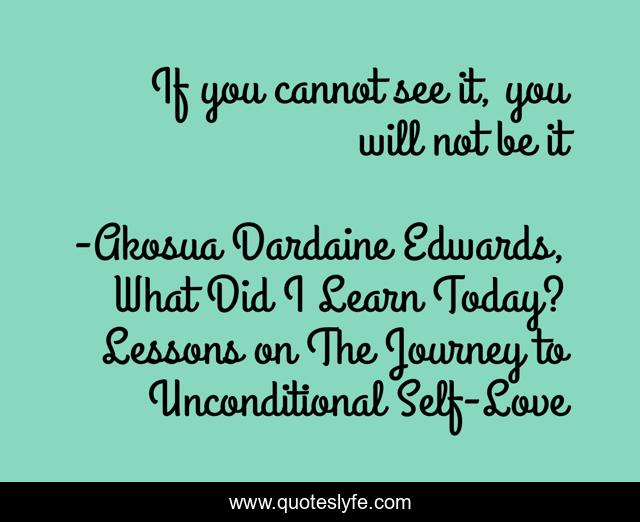 "Akosua Dardaine Edwards, What Did I Learn Today? Lessons on The Journey to Unconditional Self-Love Quotes." Quoteslyfe.com, 2025. Mon. 15 Dec. 2025. <https://www.quoteslyfe.com/quote/If-you-cannot-see-it-you-will-160157>.