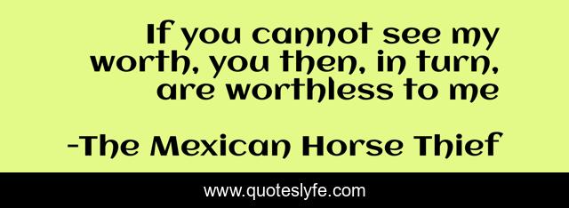 "The Mexican Horse Thief Quotes." Quoteslyfe.com, 2025. Fri. 05 Dec. 2025. <https://www.quoteslyfe.com/quote/If-you-cannot-see-my-worth-you-77877>.