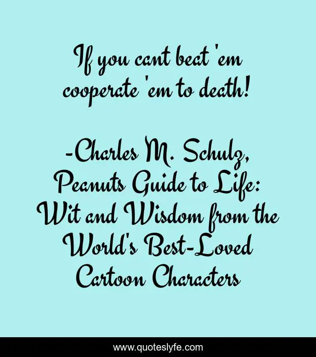 "Charles M. Schulz, Peanuts Guide to Life: Wit and Wisdom from the World's Best-Loved Cartoon Characters Quotes." Quoteslyfe.com, 2025. Sat. 06 Dec. 2025. <https://www.quoteslyfe.com/quote/If-you-cant-beat-em-cooperate-em-147147>.