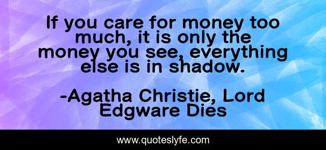 This page presents the quote "If you care for money too much, it is only the money you see, everything else is in shadow.". Author of this quote is Agatha Christie, Lord Edgware Dies. .