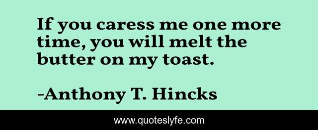 This page presents the quote "If you caress me one more time, you will melt the butter on my toast.". Author of this quote is Anthony T. Hincks. This quote is about butter, me, love, toast, philosophy, one-more-time, melt, one, caress,.