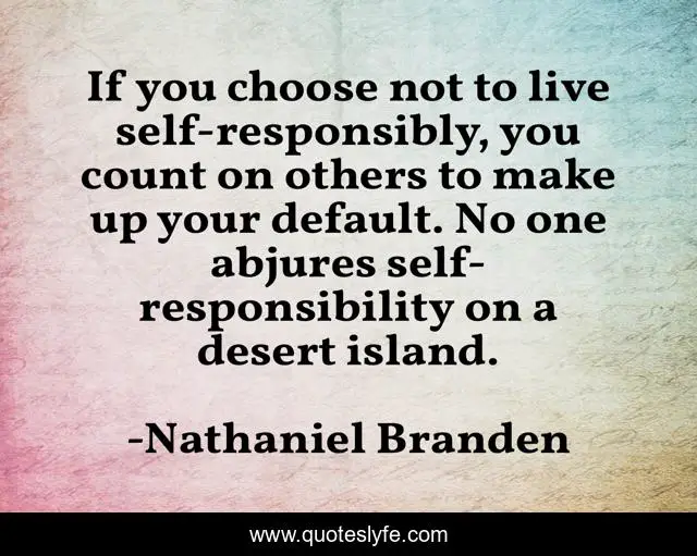 This page presents the quote "If you choose not to live self-responsibly, you count on others to make up your default. No one abjures self-responsibility on a desert island.". Author of this quote is Nathaniel Branden. This quote is about responsibility, psychology, self-esteem,.