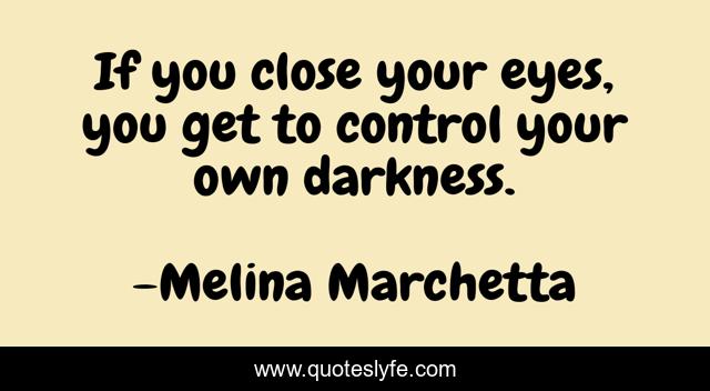 This page presents the quote "If you close your eyes, you get to control your own darkness.". Author of this quote is Melina Marchetta. This quote is about thought-provoking, darkness, deep, jellicoe-road,.