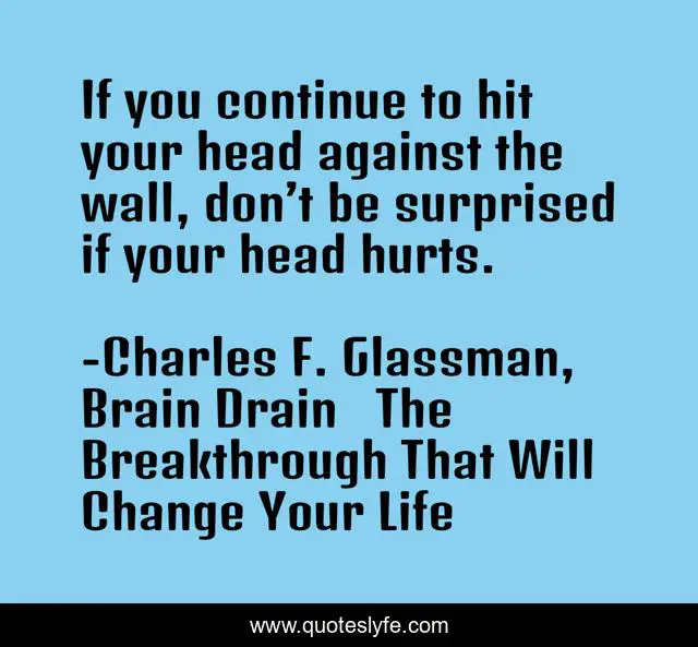 "Charles F. Glassman, Brain Drain The Breakthrough That Will Change Your Life Quotes." Quoteslyfe.com, 2025. Fri. 05 Dec. 2025. <https://www.quoteslyfe.com/quote/If-you-continue-to-hit-your-head-109670>.