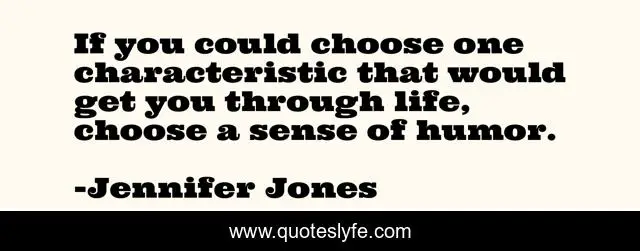This page presents the quote "If you could choose one characteristic that would get you through life, choose a sense of humor.". Author of this quote is Jennifer Jones. This quote is about life, sense of humor,.