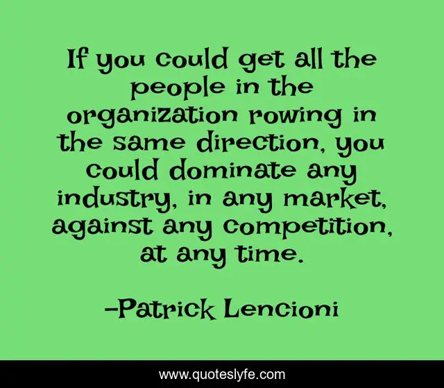 This page presents the quote "If you could get all the people in the organization rowing in the same direction, you could dominate any industry, in any market, against any competition, at any time.". Author of this quote is Patrick Lencioni. This quote is about competition, people,.
