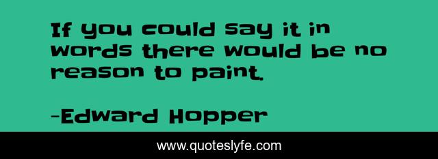 This page presents the quote "If you could say it in words there would be no reason to paint.". Author of this quote is Edward Hopper. This quote is about painters, painting,.