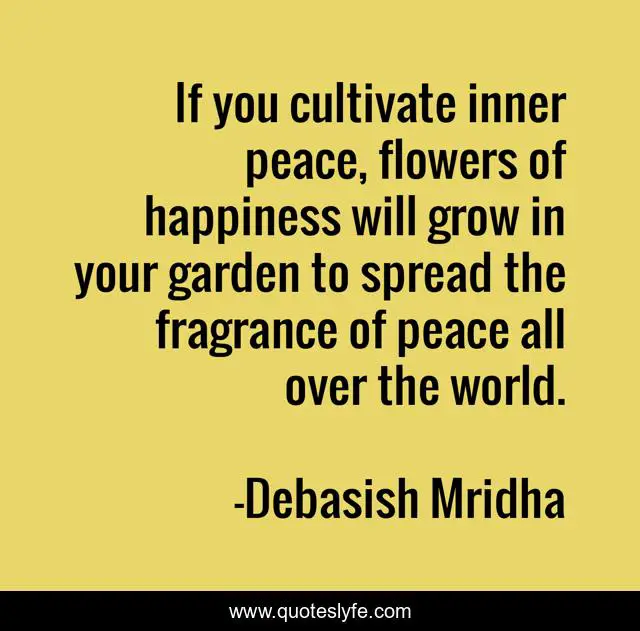 This page presents the quote "If you cultivate inner peace, flowers of happiness will grow in your garden to spread the fragrance of peace all over the world.". Author of this quote is Debasish Mridha. This quote is about flowers-of-happiness, cultivate-inner-peace, philosophy, debasish-mridha, quotes, inspirational, spread-peace, enthusiasm, debasish-mridha-m-d,.
