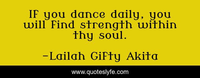 This page presents the quote "If you dance daily, you will find strength within thy soul.". Author of this quote is Lailah Gifty Akita. This quote is about confidence, strength, dance, positive, motivational, music, optimistic,.