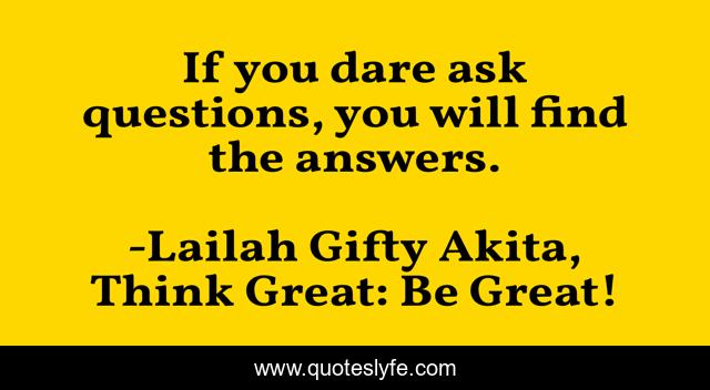 "Lailah Gifty Akita, Think Great: Be Great! Quotes." Quoteslyfe.com, 2025. Sat. 06 Dec. 2025. <https://www.quoteslyfe.com/quote/If-you-dare-ask-questions-you-will-131087>.