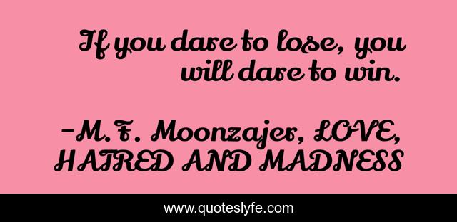 "M.F. Moonzajer, LOVE, HATRED AND MADNESS Quotes." Quoteslyfe.com, 2025. Mon. 08 Dec. 2025. <https://www.quoteslyfe.com/quote/If-you-dare-to-lose-you-will-255866>.