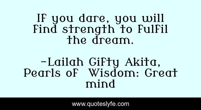"Lailah Gifty Akita, Pearls of Wisdom: Great mind Quotes." Quoteslyfe.com, 2025. Sun. 07 Dec. 2025. <https://www.quoteslyfe.com/quote/If-you-dare-you-will-find-strength-91844>.