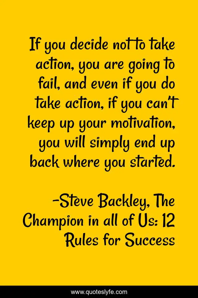 "Steve Backley, The Champion in all of Us: 12 Rules for Success Quotes." Quoteslyfe.com, 2025. Fri. 05 Dec. 2025. <https://www.quoteslyfe.com/quote/If-you-decide-not-to-take-action-32467>.