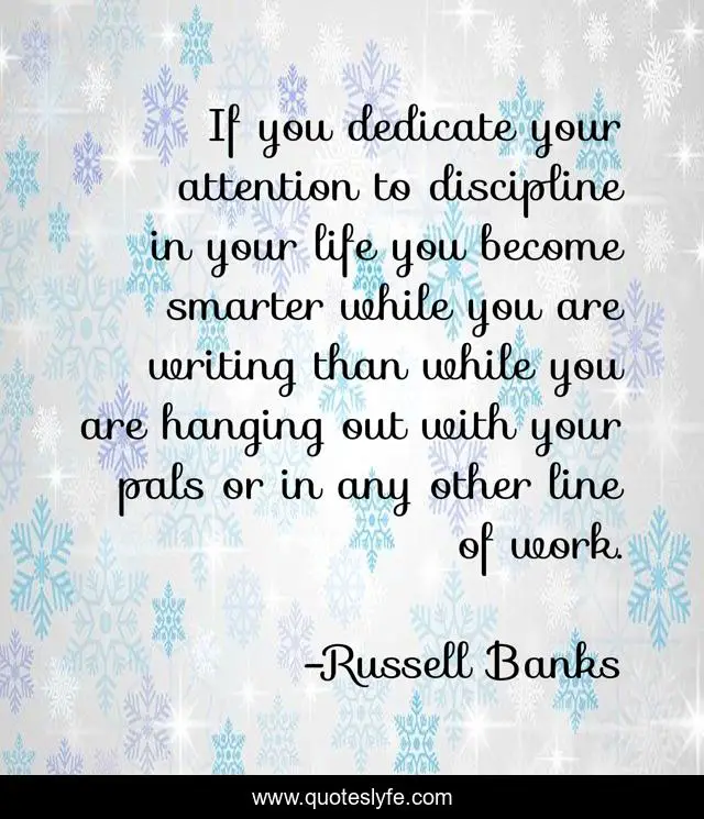 This page presents the quote "If you dedicate your attention to discipline in your life you become smarter while you are writing than while you are hanging out with your pals or in any other line of work.". Author of this quote is Russell Banks. This quote is about discipline, writing,.