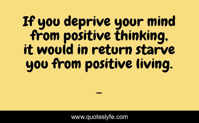 This page presents the quote "If you deprive your mind from positive thinking, it would in return starve you from positive living.". Author of this quote is . This quote is about edmond-mbiaka, your-mind, living-positively, think-positive, positive-thinking,.