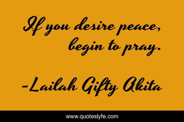 "Lailah Gifty Akita Quotes." Quoteslyfe.com, 2025. Mon. 08 Dec. 2025. <https://www.quoteslyfe.com/quote/If-you-desire-peace-begin-to-pray-73266>.
