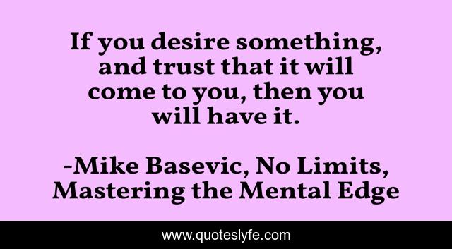 "Mike Basevic, No Limits, Mastering the Mental Edge Quotes." Quoteslyfe.com, 2025. Sun. 07 Dec. 2025. <https://www.quoteslyfe.com/quote/If-you-desire-something-and-trust-that-119800>.