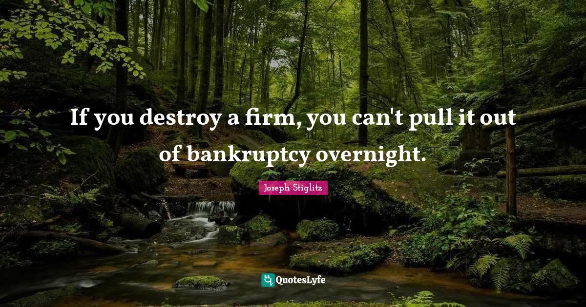 This page presents the quote "If you destroy a firm, you can't pull it out of bankruptcy overnight.". Author of this quote is Joseph Stiglitz. This quote is about firm, ifs, bankruptcy,.
