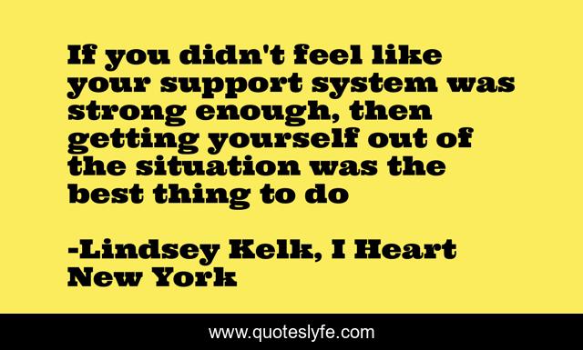 This page presents the quote "If you didn't feel like your support system was strong enough, then getting yourself out of the situation was the best thing to do". Author of this quote is Lindsey Kelk, I Heart New York. This quote is about friendship, love, family, affection,.