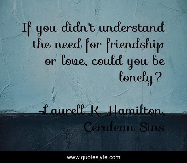 This page presents the quote "If you didn't understand the need for friendship or love, could you be lonely?". Author of this quote is Laurell K. Hamilton, Cerulean Sins. This quote is about lonely, sociopath,.