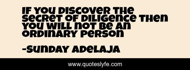 This page presents the quote "If you discover the secret of diligence then you will not be an ordinary person". Author of this quote is Sunday Adelaja. This quote is about extraordinary, calling, purpose, success, diligence,.
