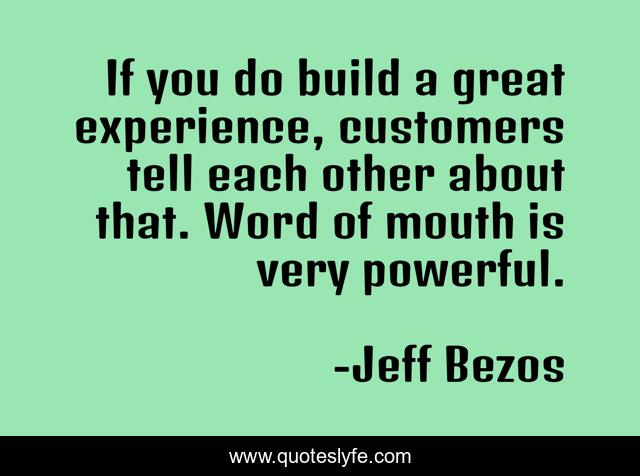 This page presents the quote "If you do build a great experience, customers tell each other about that. Word of mouth is very powerful.". Author of this quote is Jeff Bezos. This quote is about great, powerful,.
