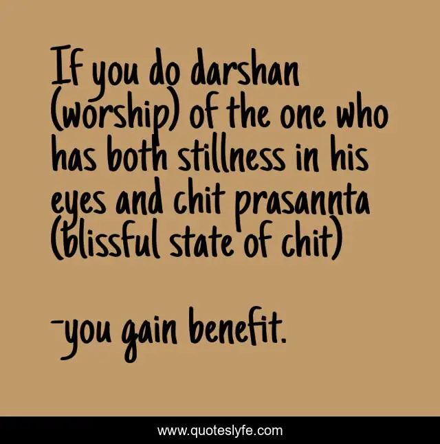 This page presents the quote "If you do darshan (worship) of the one who has both stillness in his eyes and chit prasannta (blissful state of chit)". Author of this quote is you gain benefit.. .