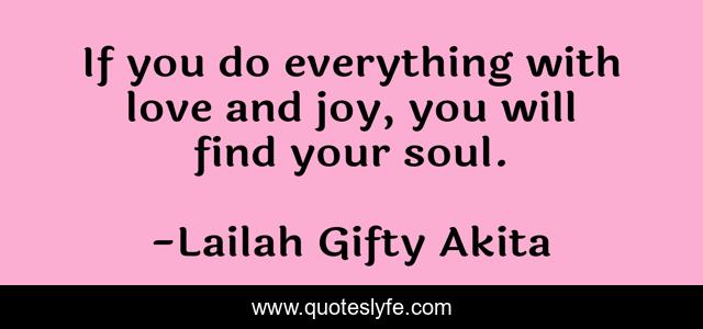 This page presents the quote "If you do everything with love and joy, you will find your soul.". Author of this quote is Lailah Gifty Akita. This quote is about joy, working, love, soul, affection,.