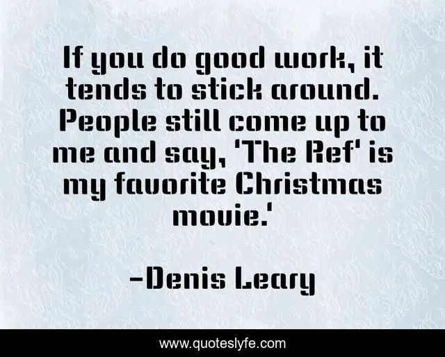 This page presents the quote "If you do good work, it tends to stick around. People still come up to me and say, 'The Ref' is my favorite Christmas movie.'". Author of this quote is Denis Leary. This quote is about me, good, work,.