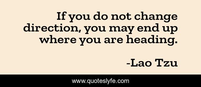 This page presents the quote "If you do not change direction, you may end up where you are heading.". Author of this quote is Lao Tzu. This quote is about direction, end,.