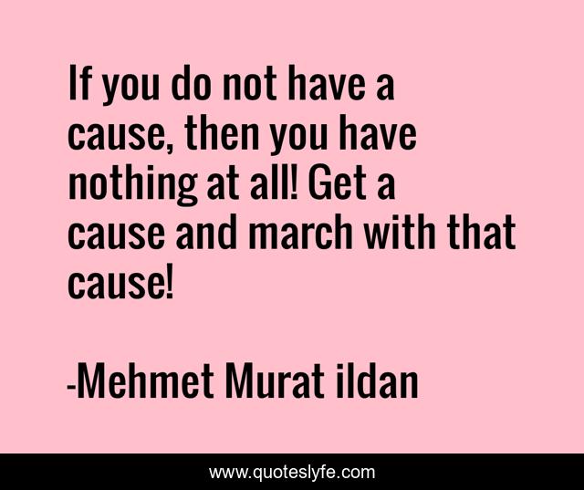 This page presents the quote "If you do not have a cause, then you have nothing at all! Get a cause and march with that cause!". Author of this quote is Mehmet Murat ildan. This quote is about turkish-aphorisms, mehmet-murat-ildan, ildan-wise-sayings, turkish, ildan-wisdom, turkish-sayings, turkish-playwrights, turkish-wisdom-words, turkish-writers,.