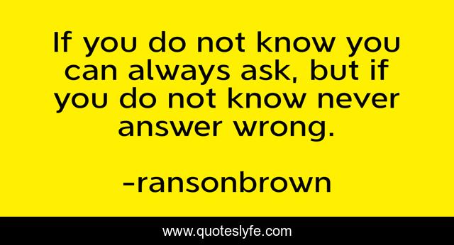 This page presents the quote "If you do not know you can always ask, but if you do not know never answer wrong.". Author of this quote is ransonbrown. This quote is about others-may-follow, life-experience, careers,.