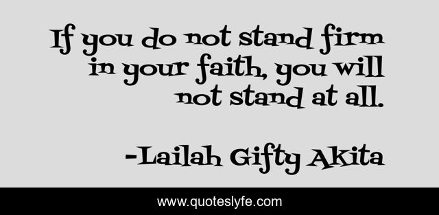 This page presents the quote "If you do not stand firm in your faith, you will not stand at all.". Author of this quote is Lailah Gifty Akita. This quote is about faith, christian, inspirational, inner-strength, enthusiasm, beliefs, hope,.